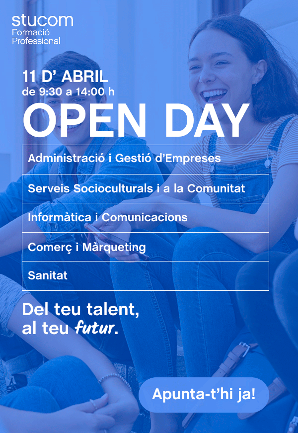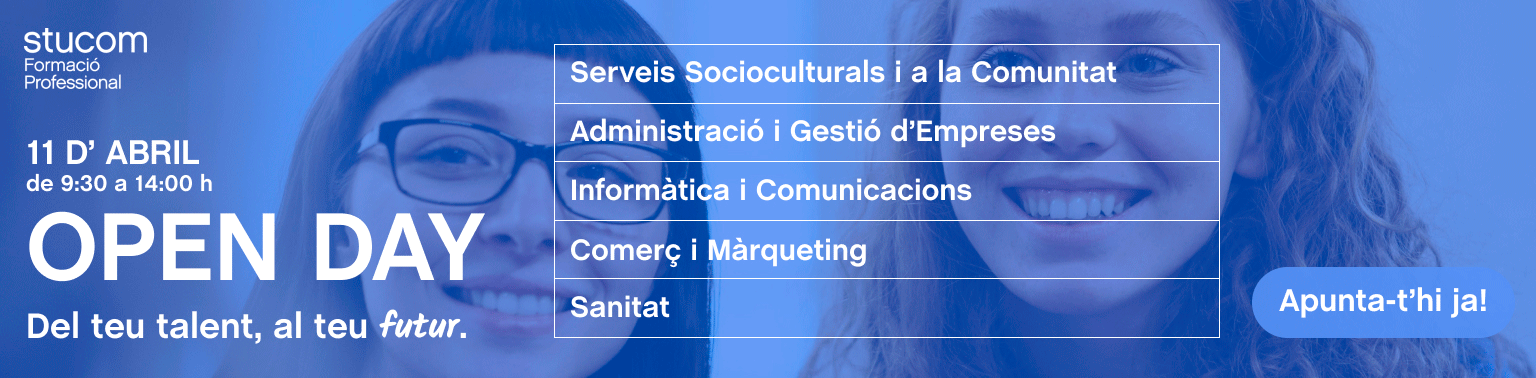 STUCOM són dos centres de formació professional amb una gran oferta de cicles formatius, de grau mitjà (CFGM) i de grau superior (CFGS).